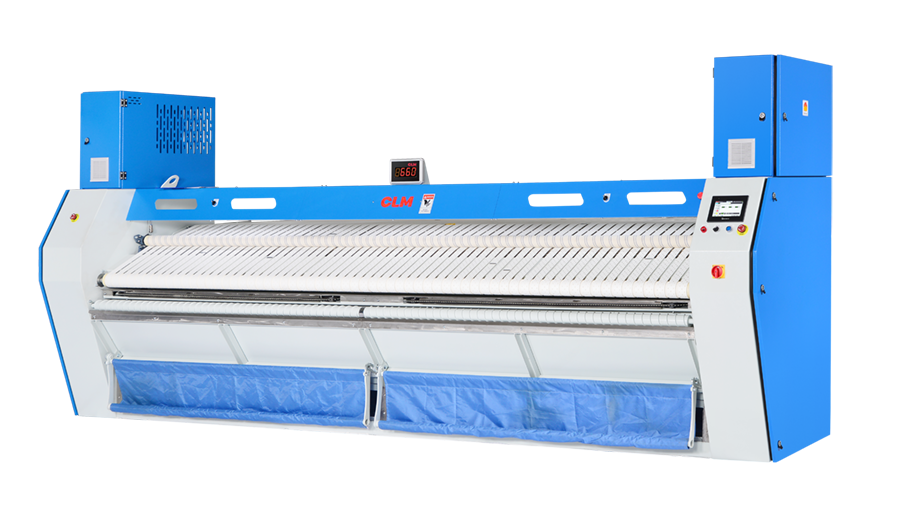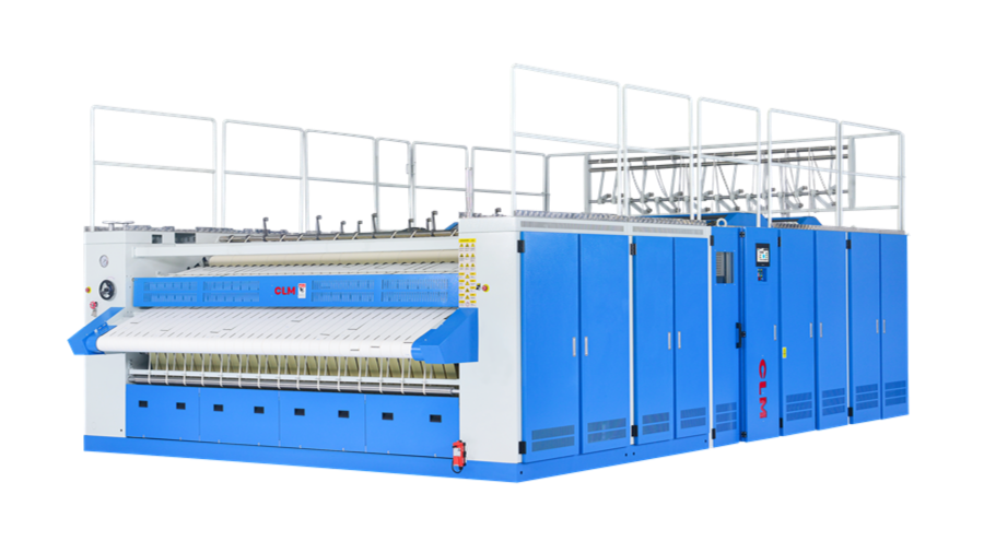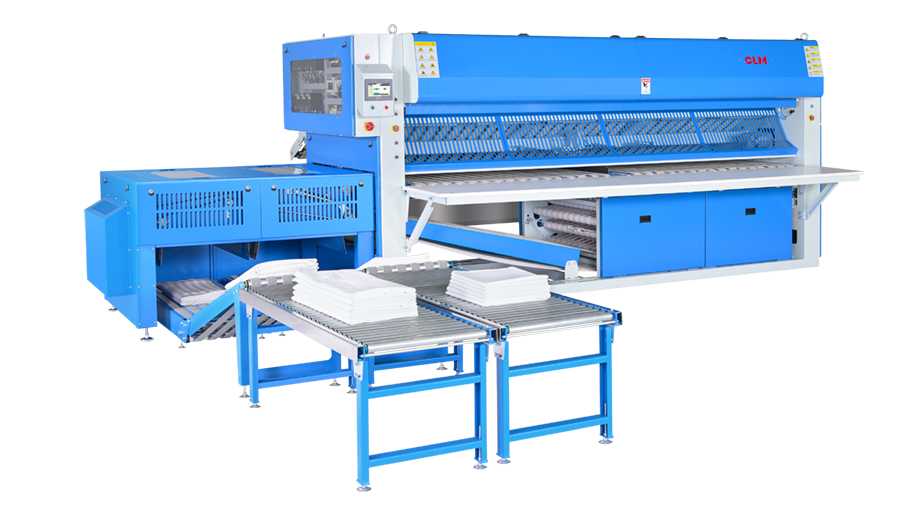 Este sistema está compuesto por transpotador de carga, lavadoras industriales en túnel, prensa, transportadores lanzadera, secadoras de tumble, colectores de pelusas y sistemas de control.