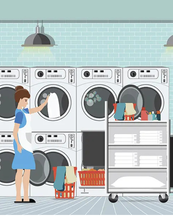 Lavadoras comerciales, escurridoras, lavadoras apiladas, secadoras y secadoras apiladas.
